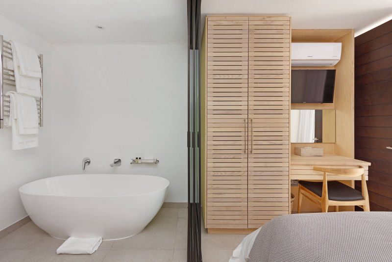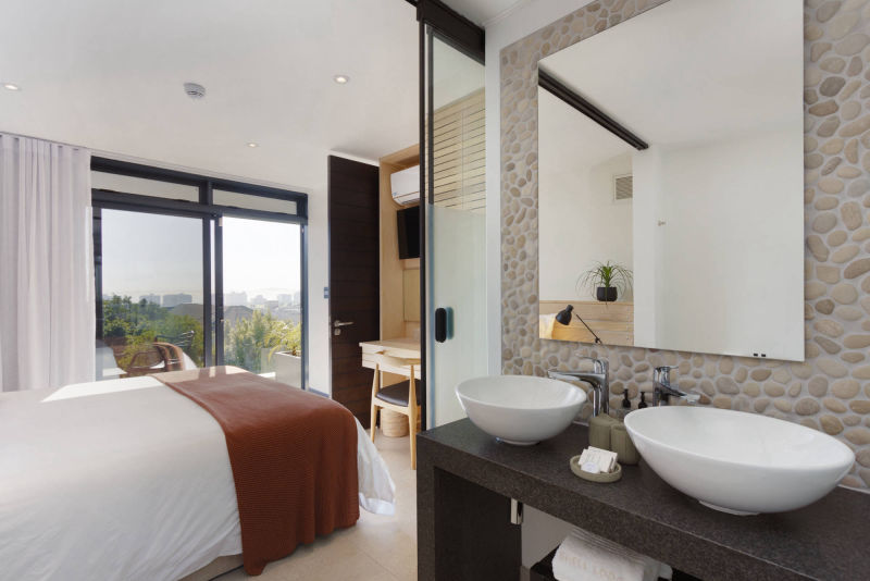 New modern guest suite space created and flat space, with high end finishes and fittings and exterior splash pool.